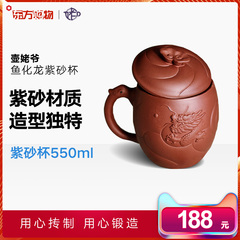 壶姥爷 鱼化龙紫砂杯带盖茶杯子办公杯单杯便携旅行茶具